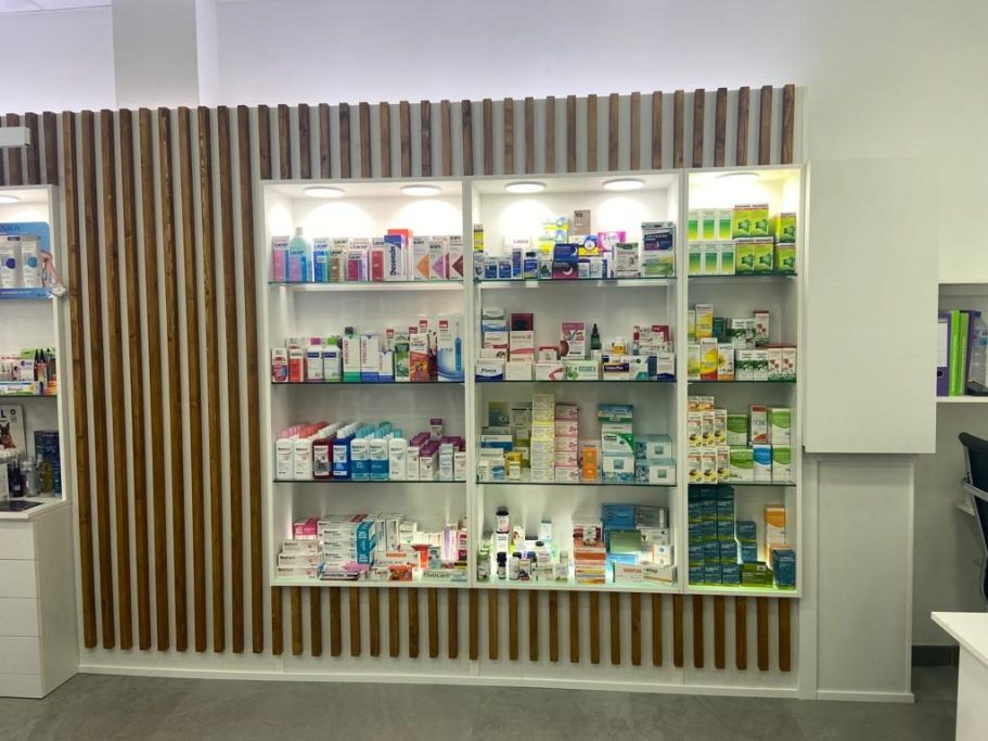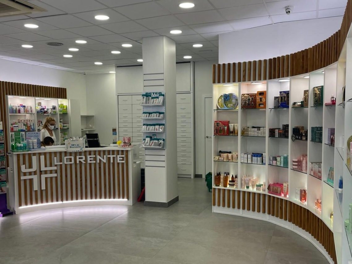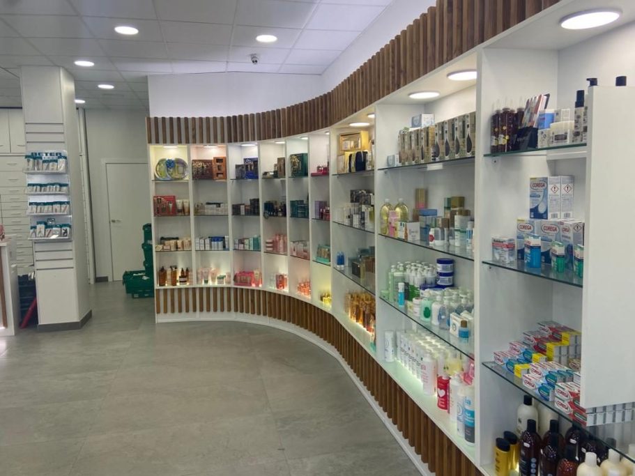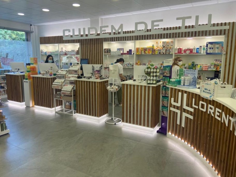 Reforma integral de una farmacia que incluye el espacio de atención al público, el laboratorio farmacéutico y la zona de oficinas.