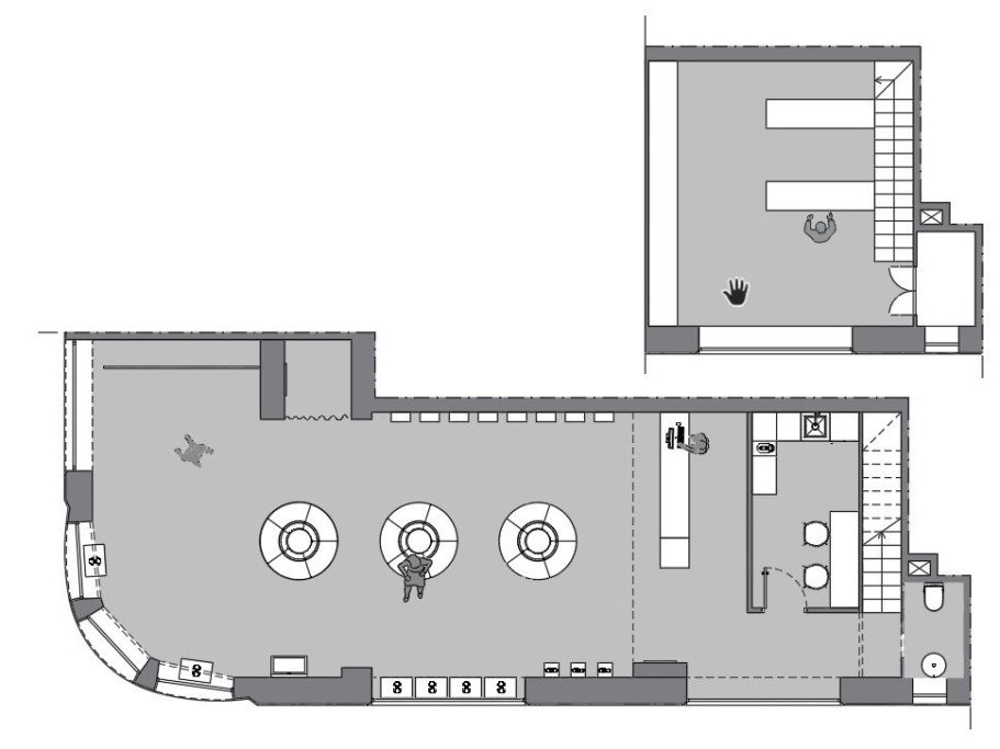La iluminación combina dos estrategias: una luz directa de carácter funcional, destinada a garantizar la correcta visibilidad de los productos y las zonas de trabajo, y una luz indirecta que aporta profundidad, ambiente y valor espacial al conjunto.