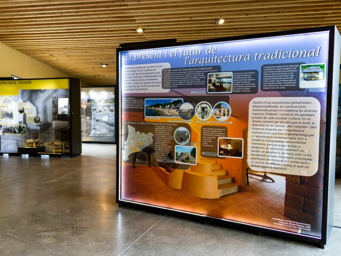 La exposición itinerante " Construint el territori " está dedicada a la arquitectura tradicional catalana y fue un encargo del Institut Ramón Muntaner. Muestra cómo los edificios utilizan materiales y elementos del entorno, integrándose en los distintos paisajes de Cataluña y contribuyendo a modelar su identidad.